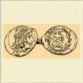 РЕВЕРС. Юноша, опирающийся на суковатую палку, держащий под левой рукой меч и поставивший ногу на скалу. Надпись по-гречески: «ЭТОЛИЯ» и две латинские буквы «Nl», начало имени магистрата.